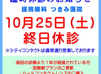 2025.10.25【久留米店】本日10/25(土)提携眼科臨時休診のお知らせ