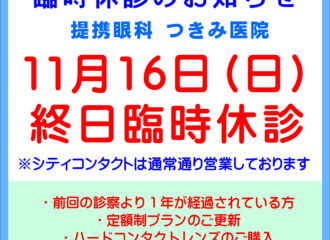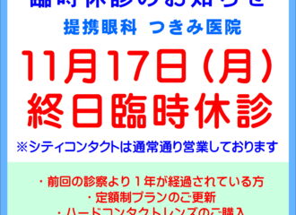 2025.11.16【久留米店】11/17(月)提携眼科臨時休診のお知らせ
