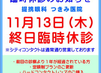 2025.11.13【久留米店】本日11/13(木)提携眼科臨時休診のお知らせ