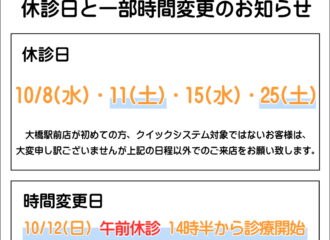 2025.09.29【大橋駅前店】10月提携眼科休診日のお知らせ🦇