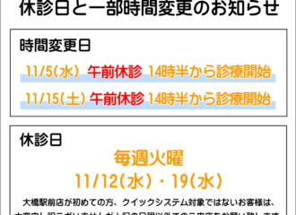 2025.10.31【大橋駅前店】11月提携眼科休診日のお知らせ🍂🌰