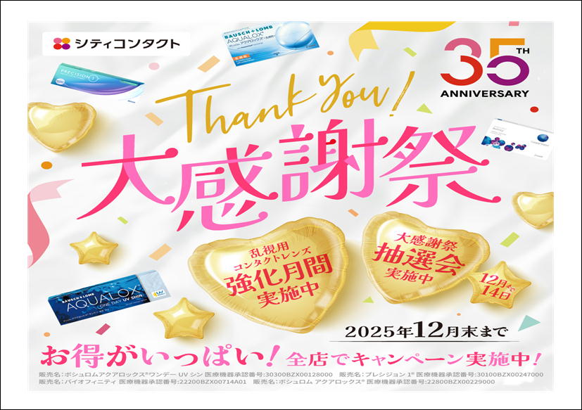 コンタクトレンズは高度管理医療機器ですので、正しく使用して頂ければと思います。ご不安、ご不明な点がございましたら、お気軽にご相談ください。