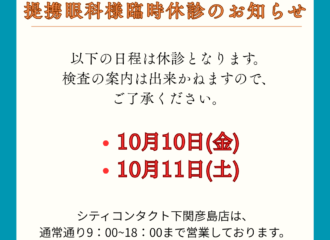 2025.10.08【下関彦島店】*10月 提携眼科様臨時休診のお知らせ*