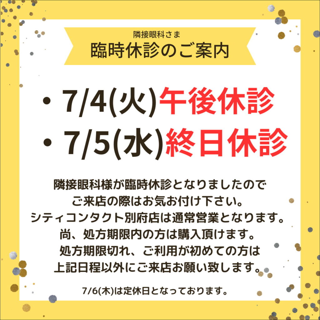 【別府店】隣接眼科さま臨時休診のお知らせ