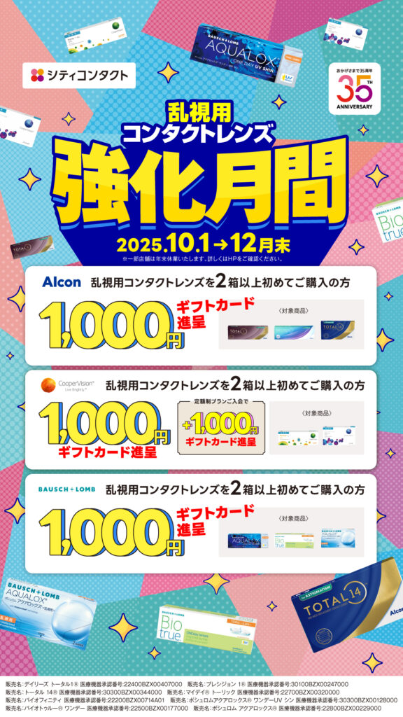 乱視用コンタクトレンズ強化月間として