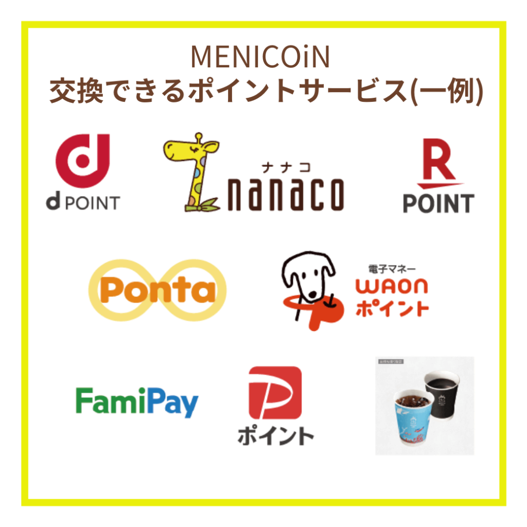 MENICOiNは、様々なポイントサービスに交換可能!