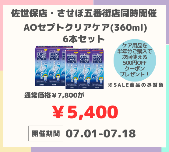 7/1(月)~7/18(木)の期間中、コンタクトレンズの洗浄液がお得に!