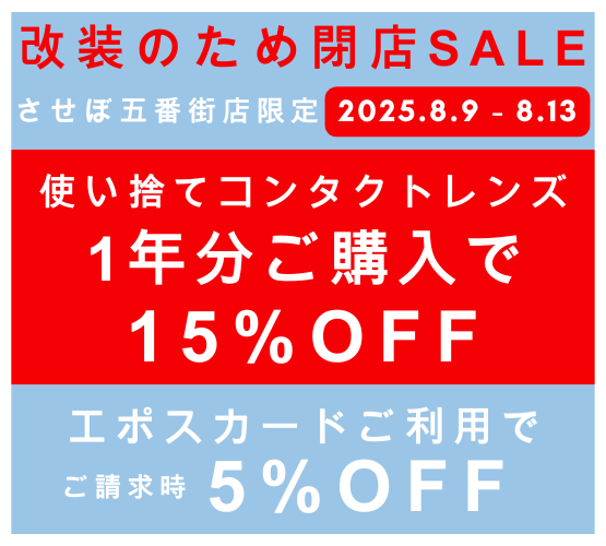 こんにちは😊シティコンタクトさせぼ五番街店からお知らせです!