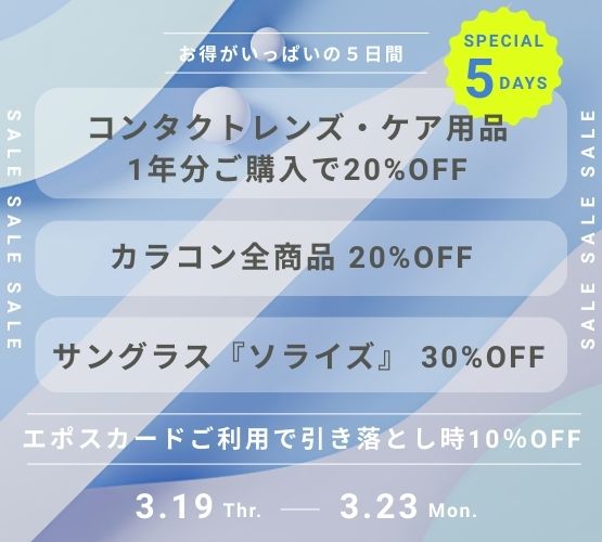 ・コンタクトレンズ・ケア用品1年分ご購入で20%OFF