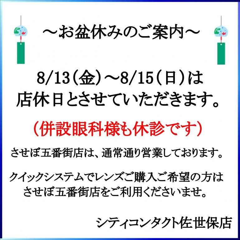 NEWS 【佐世保店】お盆休みのご案内と注文レンズの納期について