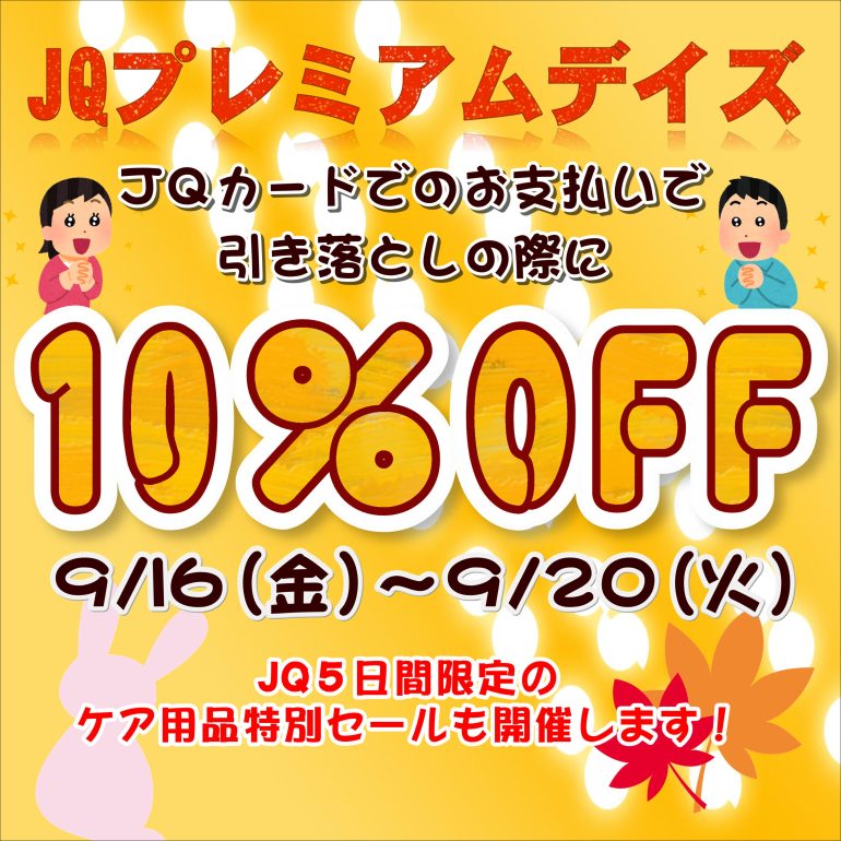 JQカードのお支払いでお引き落としの際に10%OFFに!😸💗