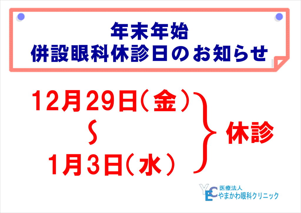 併設眼科 やまかわ眼科クリニックの休診のご案内です💁♀️