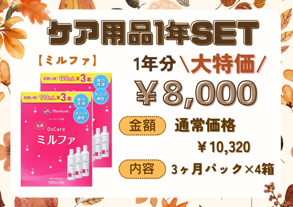 この機会にぜひコンタクトレンズと一緒にケア用品もご準備されませんか??