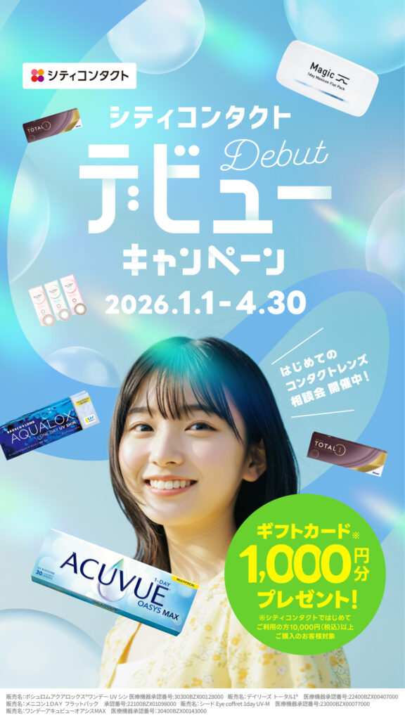 シティコンタクトをはじめてご利用の方10,000円以上購入でギフトカード1,000円分プレゼント✨
