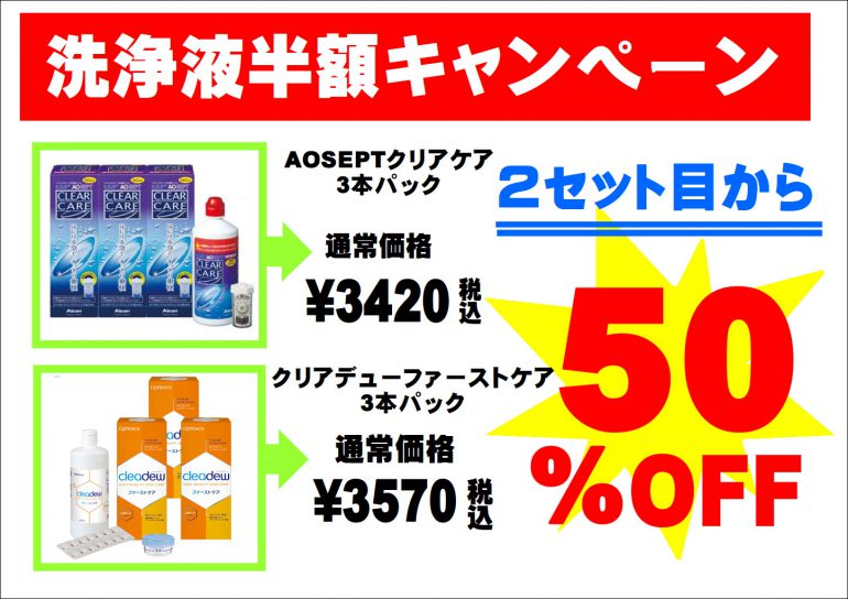 【鹿児島店】洗浄液2セット目半額キャンペーン