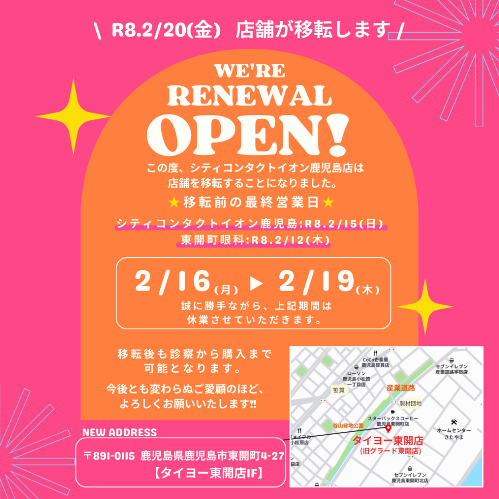 移転前の最終営業日:シティコンタクト 2/15(日)、東開町眼科 2/12(木)でございます!!