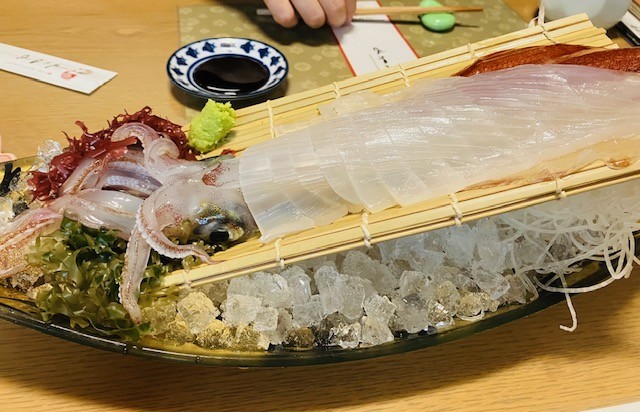 イカの活き造りも新鮮で、身に厚みがあって甘みも強くて美味しかったです🦑
