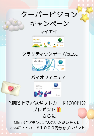 今回はクーパービジョンキャンペーンのご案内です💛💚🧡