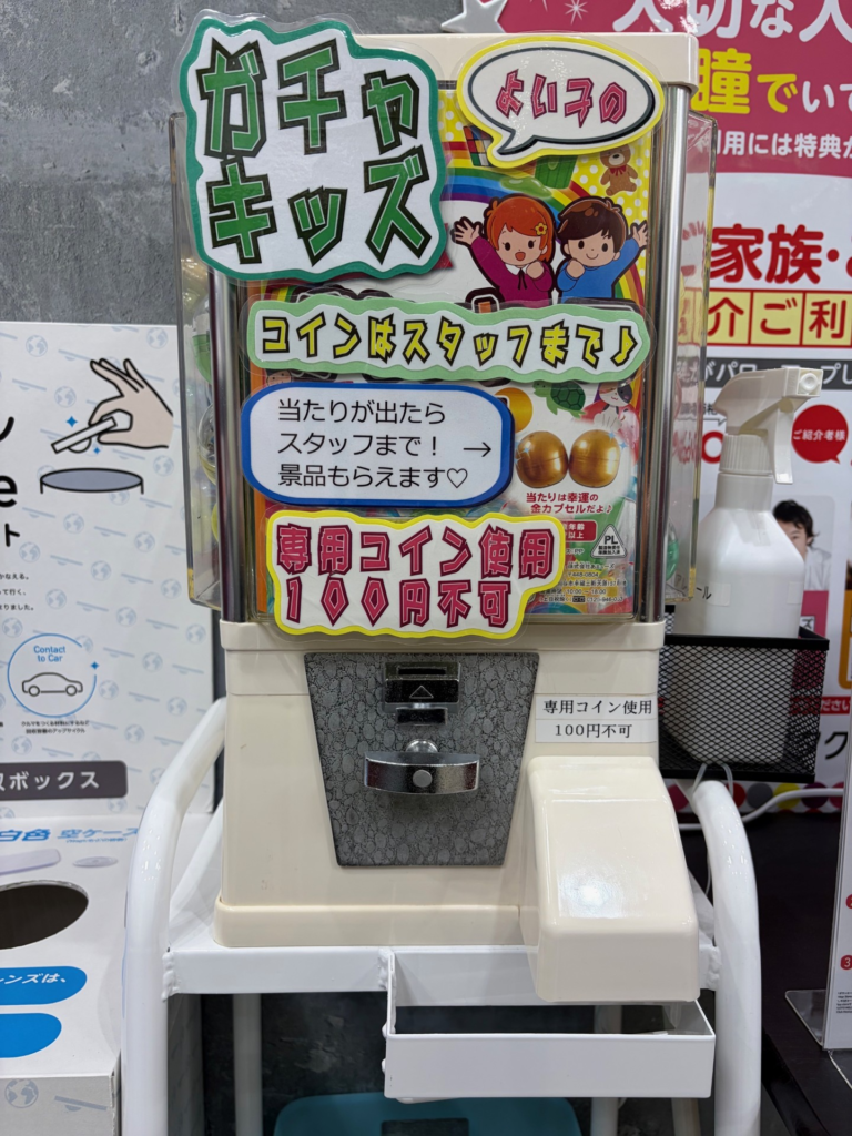 小倉店にはなんと、、、店内に数種類の絵本とガチャガチャがあり、