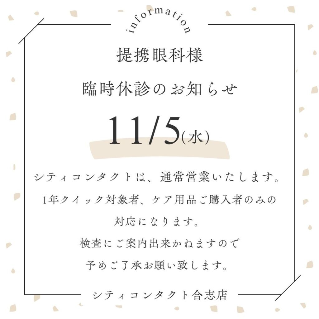 【合志店】11/5(水) 提携眼科様臨時休診のお知らせ