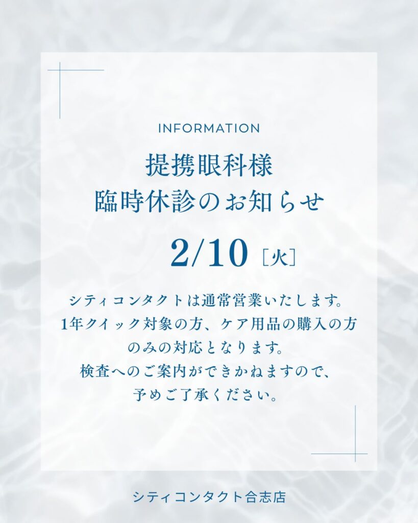 2/10 (火) は1年クイック対象の方、ケア用品の購入の方のみの対応となります。