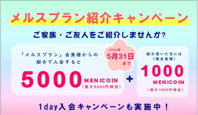 メルスプランご紹介キャンペーンが5月末までとなっております!