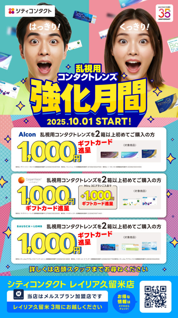 【久留米店】10/1~乱視用コンタクトレンズ強化月間
