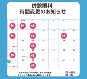 【姪浜店】7月 併設眼科様 営業時間変更・休診日のご案内