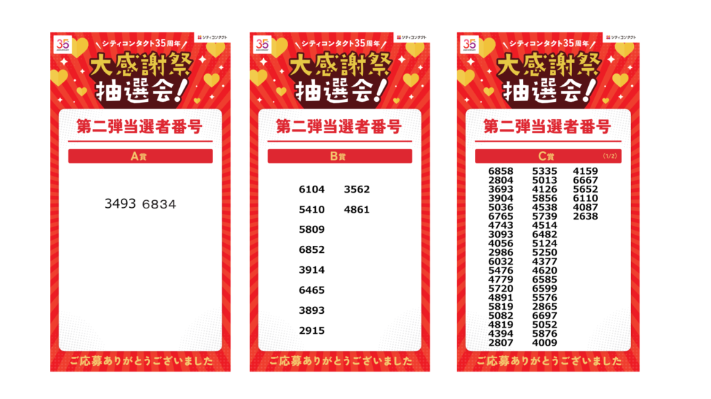 35周年大感謝祭抽選会第二弾発表!