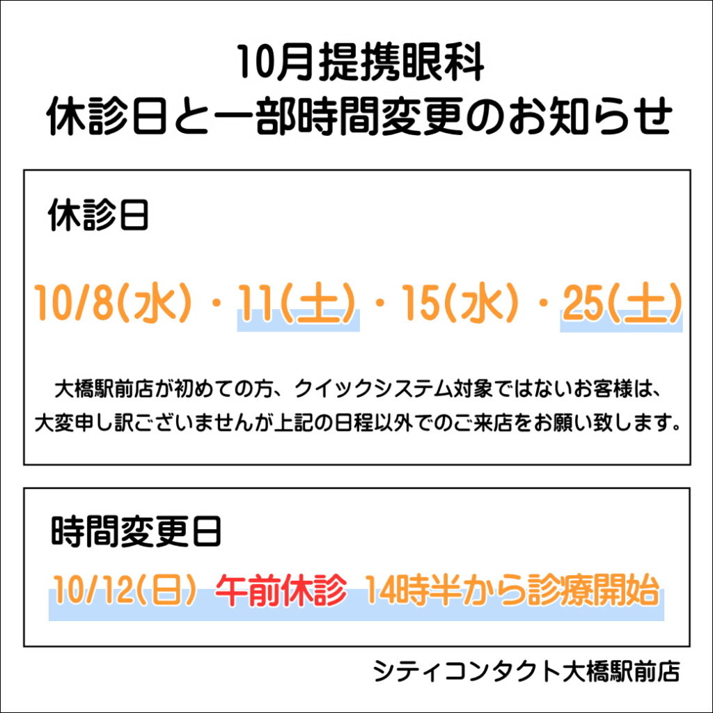 【大橋駅前店】10月提携眼科休診日のお知らせ🦇