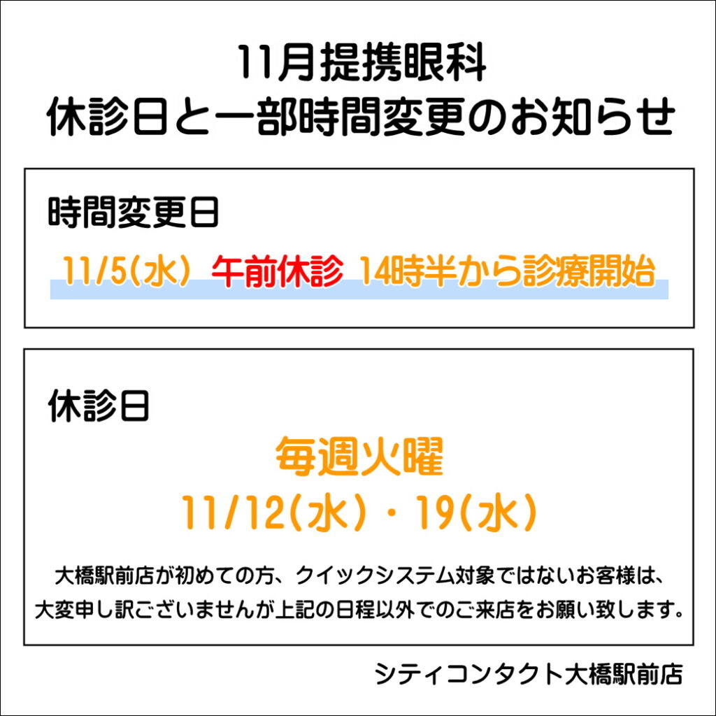 【大橋駅前店】11月提携眼科休診日のお知らせ🍂🌰