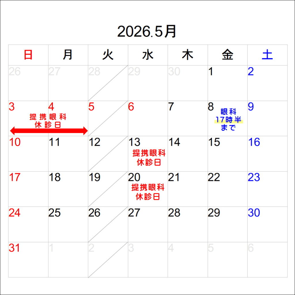 他、5月の提携眼科休診日に関しては下記の通りとなります