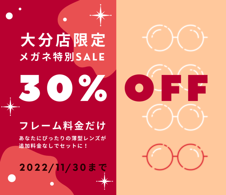 【大分店】メガネ30%OFF 大好評につき延長します☆
