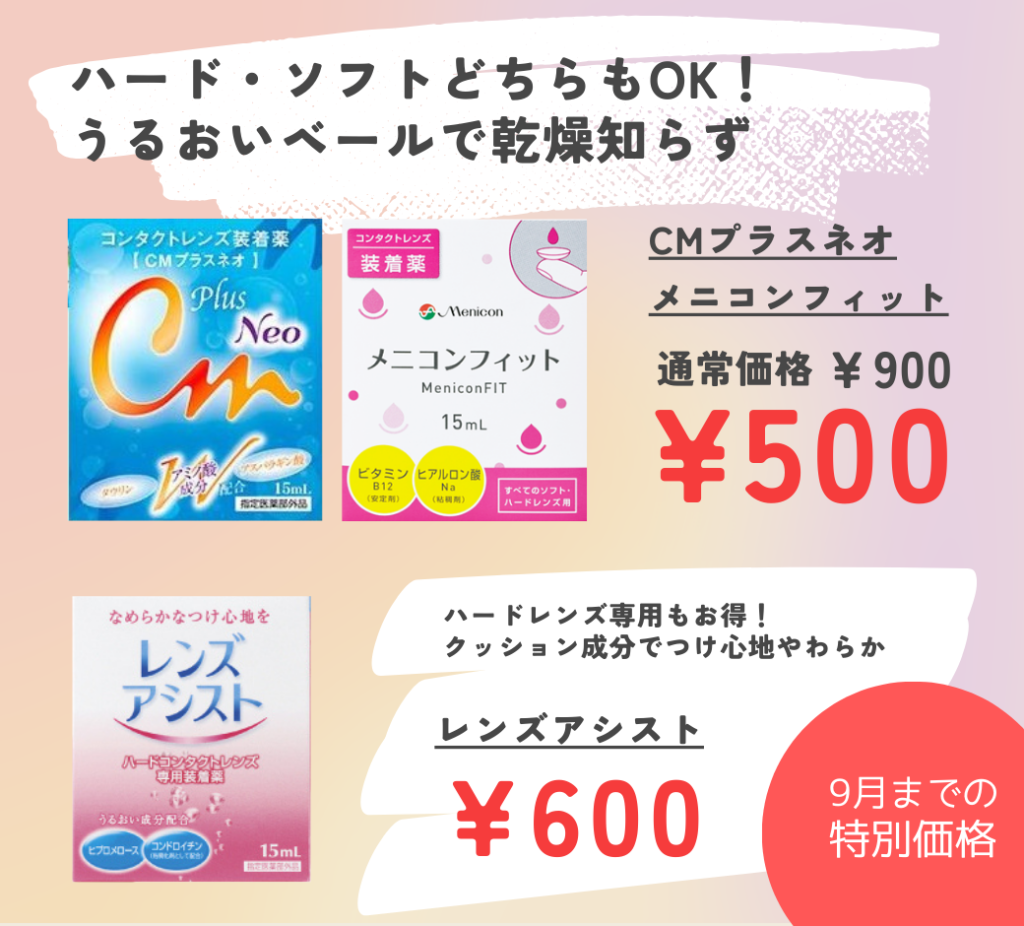 9月はコンタクトレンズの洗浄液、装着薬が大変お得です!