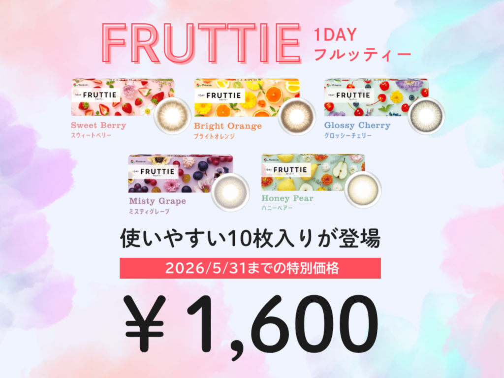 今回は大人気ワンデーカラー『フルッティー』10枚入り特別価格のお知らせです✨