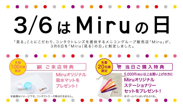 3月6日(土)当日はMiruの日を記念したノベルティをご用意しております😊