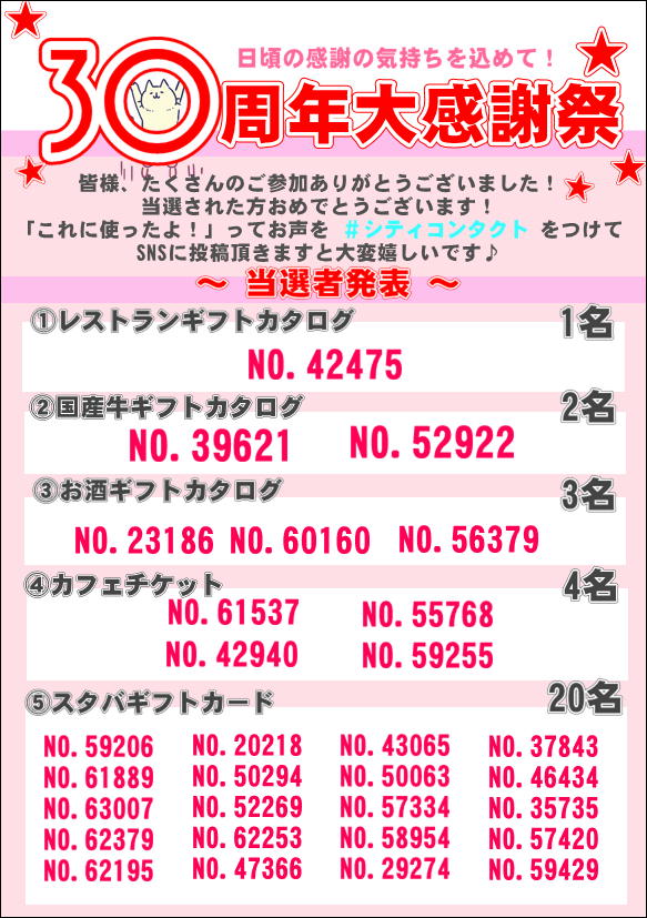 30周年祭抽選会の当選発表を行いたいと思います!!!