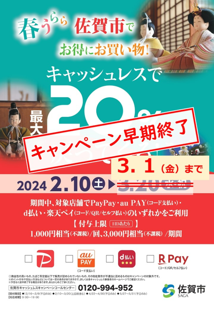 佐賀市キャッシュレス決済 最大20%還元キャンペーンが