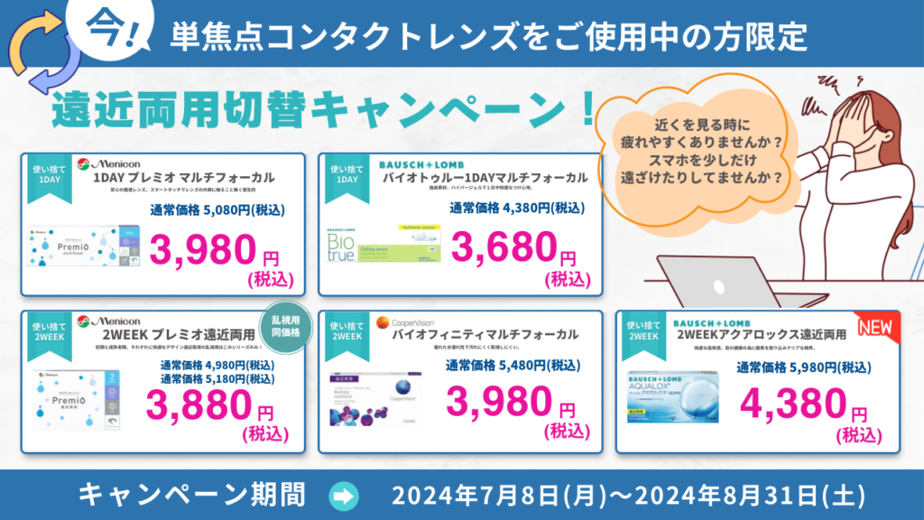 今ご使用中のコンタクトレンズと大体同じくらいの価格帯でご購入いただけるキャンペーンです!!