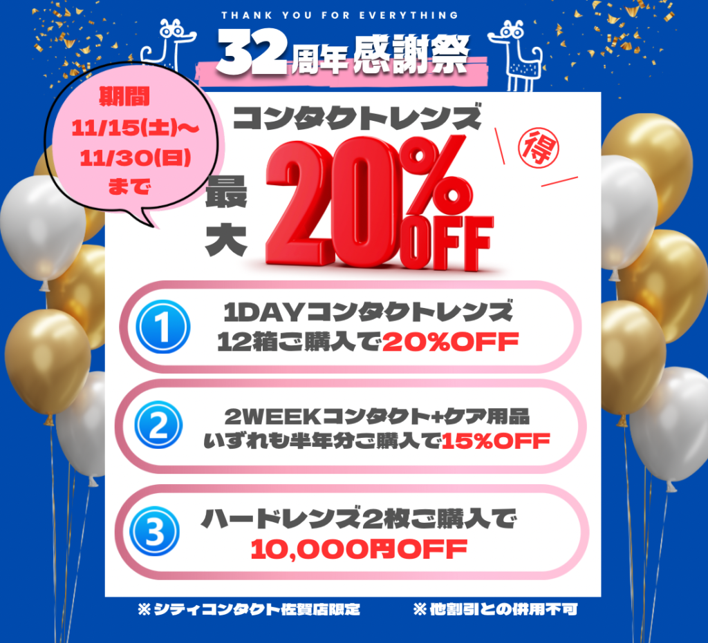 ❤️1つ目 コンタクトレンズ最大20%OFFキャンペーン