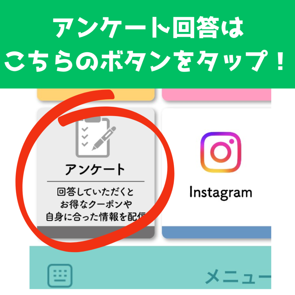 ⇩⇩⇩アンケートは公式LINEのリッチメニュー内左下にボタンがございます⇩⇩⇩