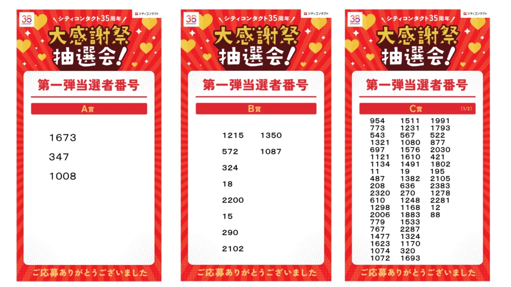 ⇩⇩⇩⇩⇩第一弾の当選者はこちら!⇩⇩⇩⇩⇩⇩