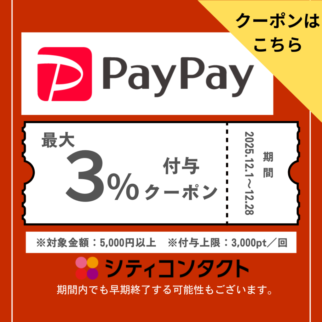 シティコンタクト佐賀店で5,000円以上購入時paypayを利用された方限定で