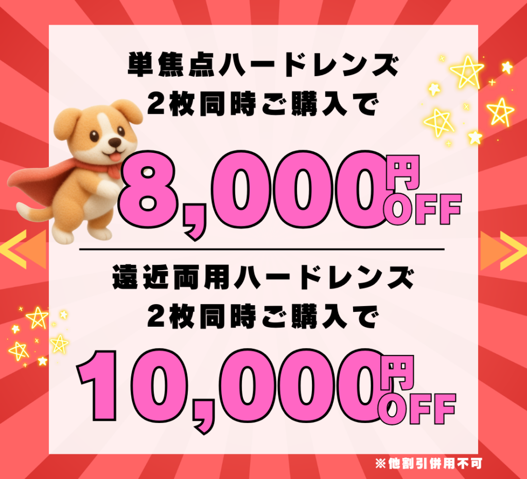 遠近両用ハードレンズ2枚同時購入で10,000円OFF