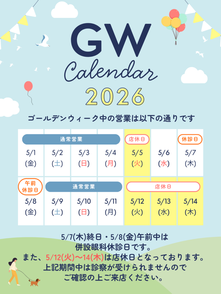 5月7日(木)終日・5月8日(金)午前中は併設眼科休診日です🙌