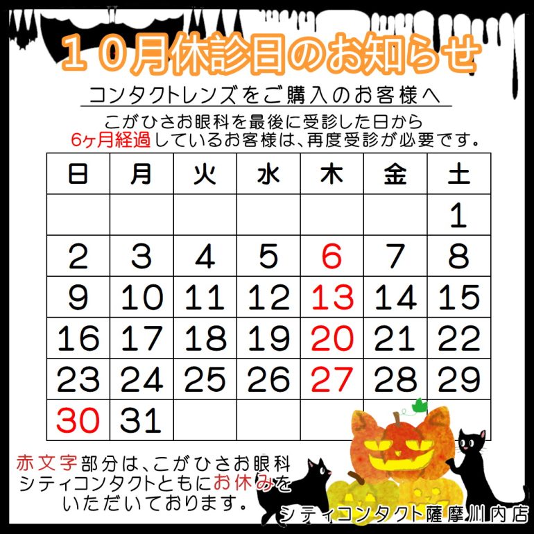 【薩摩川内店】10月休診日とクーポンのご案内