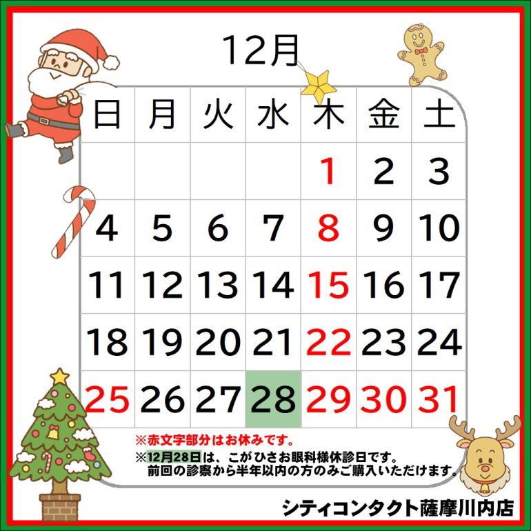 【薩摩川内店】12月休診日とクーポンのご案内
