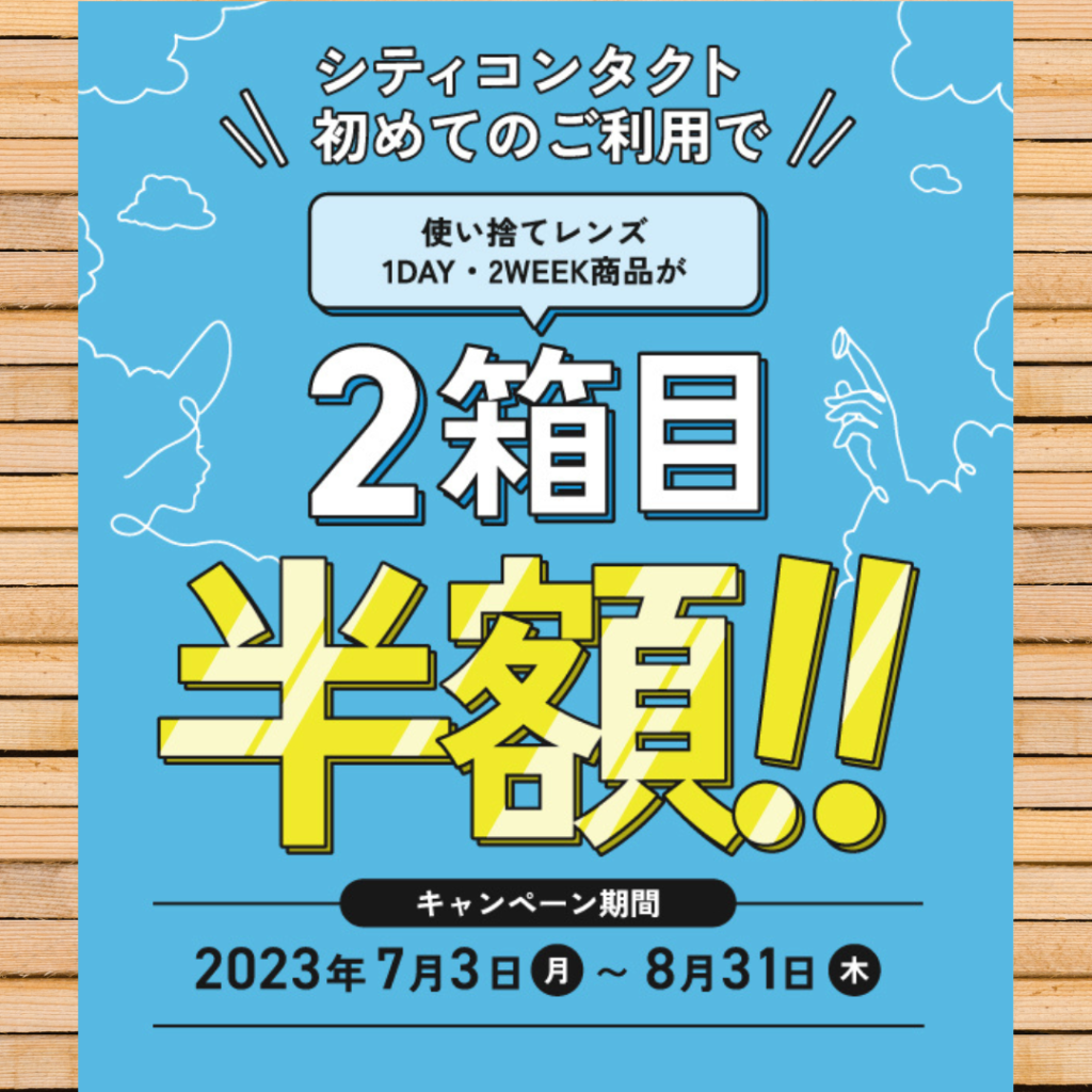 シティコンタクトではこの夏、「2箱目半額キャンペーン」を開催します👏👏👏