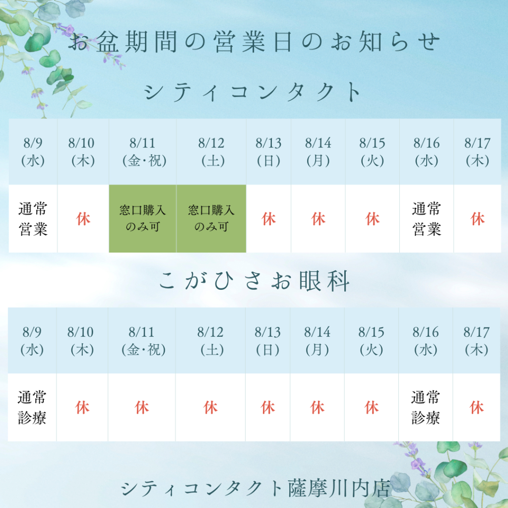 なお、8/11(金・祝)と8/12(土)はシティコンタクトのみ営業いたします🌻