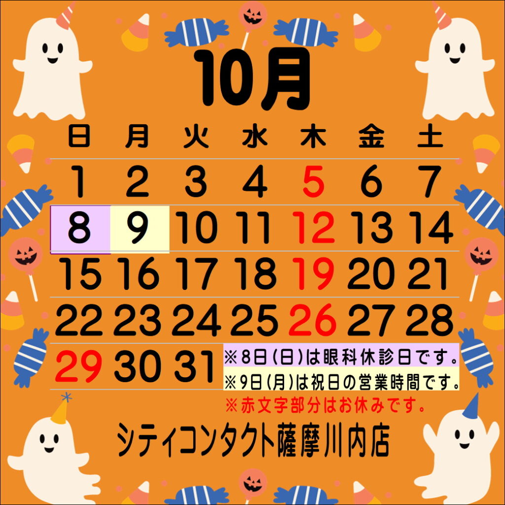 【薩摩川内店】10月営業カレンダー